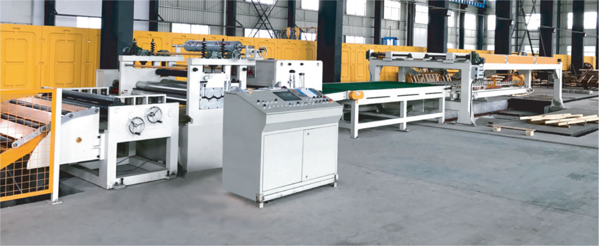 性能特点: 该生产线是将较薄金属卷板整平、剪切成块状板材的专用设备。通常由上料小车、开卷机、引头装置、校平主机、活动过桥、导向纠偏装置、定尺机构、覆膜装置、飞剪主机、输送工作台、气动排料架、液压升降垛料台、运料滚道台及液压系统、电气控制系统等组成,协同动作PLC控制。 本设备主要用来加工冷轧碳钢卷板、不锈钢卷板及有色金属卷板等,可以根据客户的需求和工件加工的需要,选用六重式、四重式或二重式校平主机。 根据客户要求,校平可采用初、精两级校平机校平;定长送剪可采用普通机械电器协同动作、数字变频技术或交流伺服技术;剪板机可配用普通机械、液压机型,电磁离合器、气动离合器传递动力的高速闸式剪板机,移动跟踪的追剪以及回转式飞剪机。配套相关成型机床可作更大范围功能延伸。